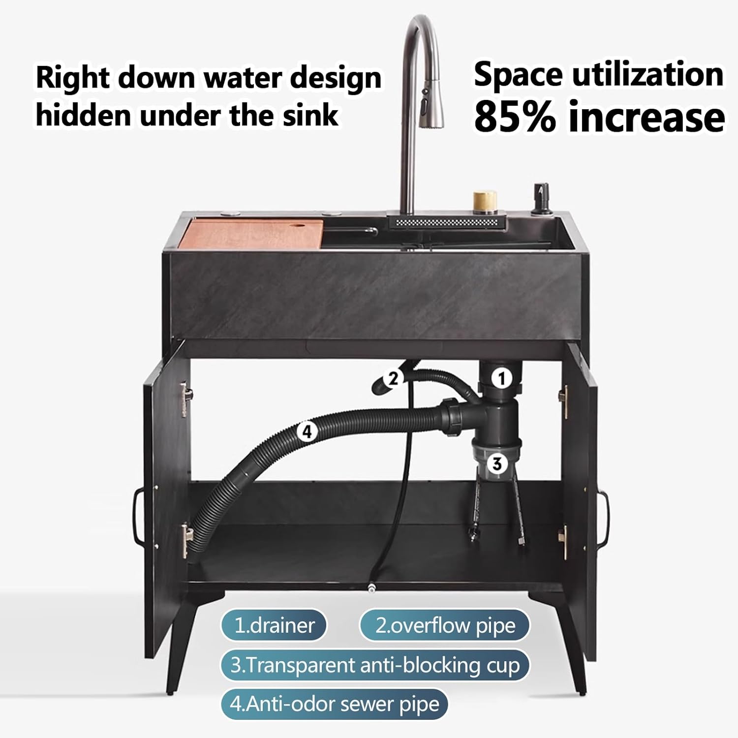 Name: Indoor Utility Waterfall Kitchen Sink with CabinetMaterial: solid wood + bionic nano coatingUses: kitchen, bar, restaurant, laundry room, cleaning room, cafeteria, garage, bathroom, shower, toilet, rental or other commercial environments.This is a versatile waterfall kitchen sink with cabinets. Looks great and makes it easy to clean any kitchen utensil. This is a necessity of modern life. Its existence can make your life more convenient.Whether you buy this item or not, thank you very much for visiting our store. If you have items you like, you can add them to your cart or keep them in your collection. When you need to buy in the future, you can check our store at any time.Kind tips:■ Due to manual measurement, there may be 1-2cm error.■ After-sales service: If you have any questions or the product is lost during use, please feel free to contact us. We will reply you within 24 hours to ensure that each of our customers can have a satisfactory shopping experience.■ No matter what problems arise, we will not run away, so please rest assured.