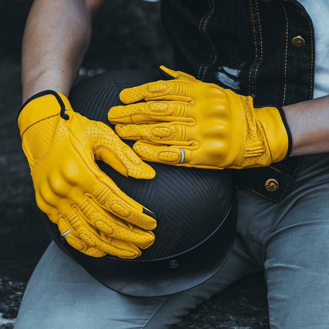 Product Details Genuine Leather Riding Gloves Non-Slip Velcro Cuffs,easy adjustment Knuckle protection Reinforced double stitching for durability Improved handle grip and flexibility Size Chart-Palm Width M: 8-9cm/3.1-3.5inch L : 9-10cm/3.5-3.9inch XL:10-11cm/3.9-4.3inch XXL: 11-12cm/4.3-4.7inch Package information 1* Pair Gloves