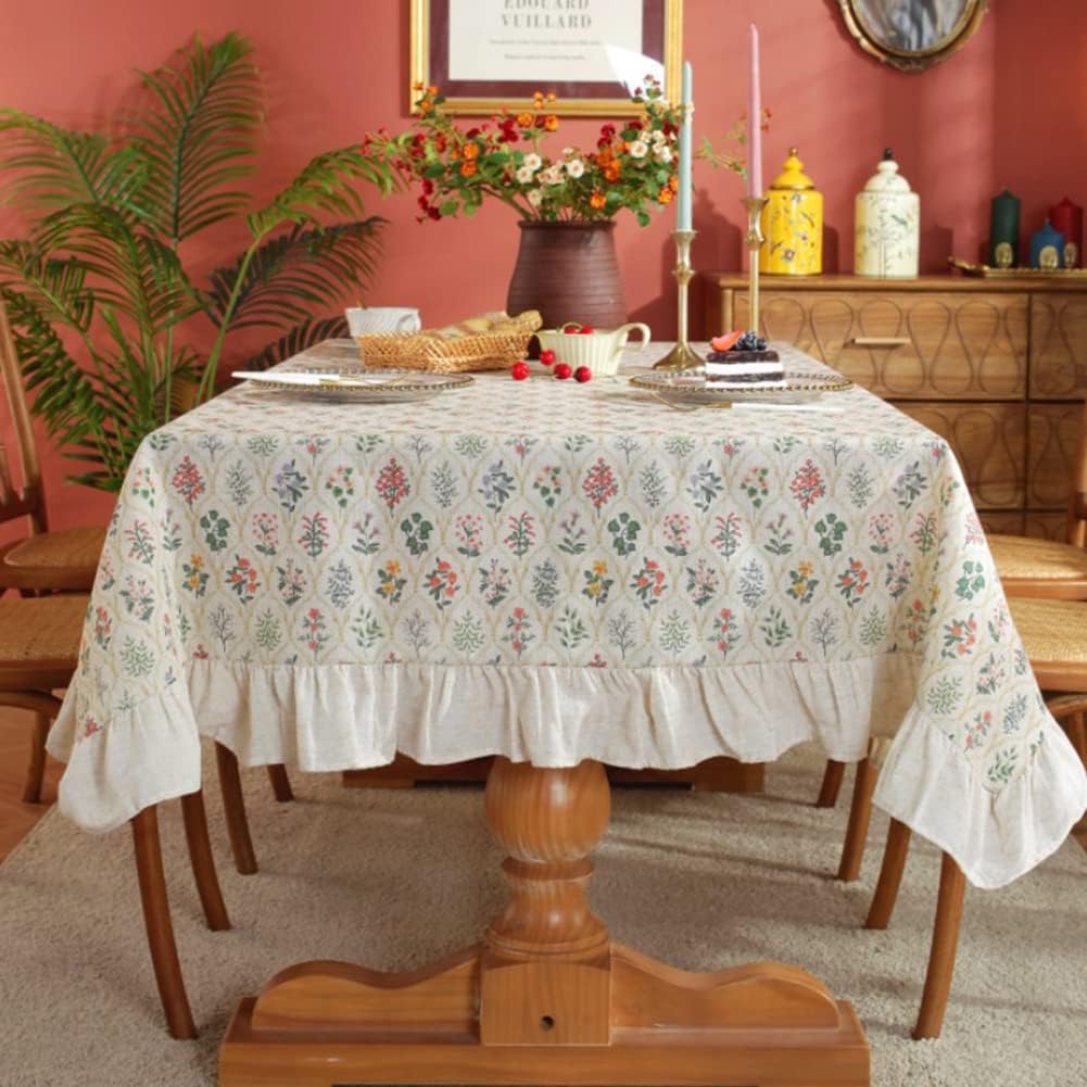 vctops Farmhouse Tablecloth with Ruffle, Spring Florals Print Decorative Tabletop Moroccan Tile Geometric Plaid Rectangle Oblong Table Cover for Kitchen Dining Room Party Decor (Ruffle,55"x102")
