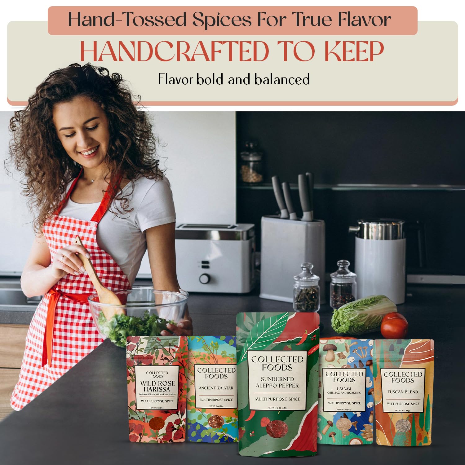 | Flavor | Za'atar, Umami, Tuscan, Aleppo Pepper, Harissa |