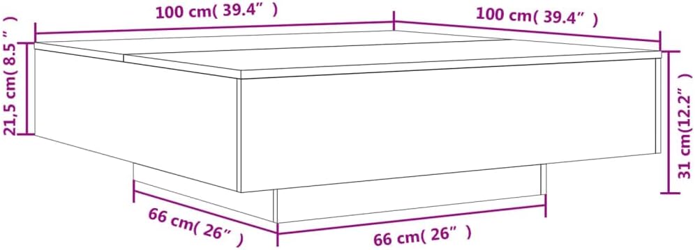 Decorate your living room with this modern coffee table, it easily blends with furniture in any style at your house. Durable material: The engineered wood is of exceptional quality with a smooth surface and features strength, stability and resistance to moisture.Sturdy tabletop: The sturdy tabletop of this side table provides a secure surface, on which you can place drinks, vases, fruit bowls or ornaments.Versatile design: This sofa table can meet your different requirements for it can be used as a side table, tea table or telephone table.Color: Smoked oakMaterial: Engineered woodDimensions: 39.4" x 39.4" x 12.2" (W x D x H)Assembly required: YesCalifornia Proposition 65 –:: – .