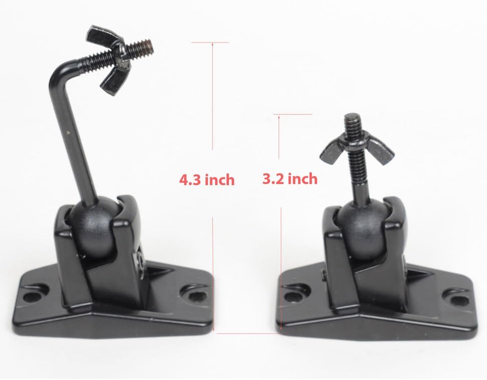 VideoSecu new design steel construction speaker mount is the ideal solution for most speakers weighing less than 10 lbs. The thread size is 1/4" 20, 4mm and 5mm. The ball and clamp design offers flexible adjustment for the speakers to get better audio position. VideoSecu brand speaker mount, please report to Amazon if the product you received without VideoSecu brand.