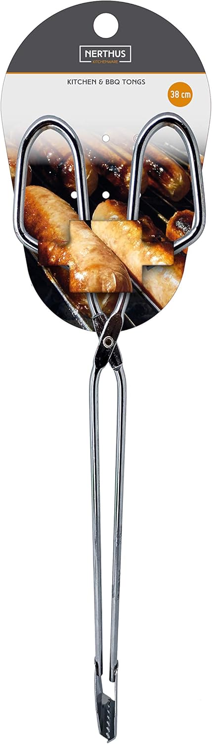 Practical kitchen tongs with 38 cm length to turn the steaks around and grab food from the pan with ease and safety. The ends of this tongs have grooves to drain food well. Strong and durable due to stainless steel construction