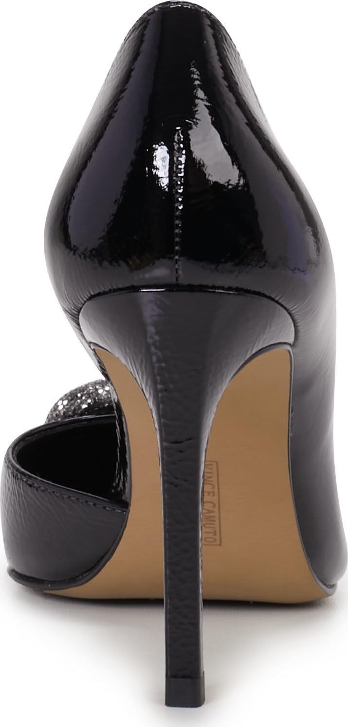 The Emelia d'Orsay pump is here to help you sparkle in any crowd. Constructed in black patent on a covered, stiletto heel measuring 3.54 inches, the shoe features a rectangular pave jeweled ornament. While you shine bright, your feet will enjoy the extra cushion of our comfort sock and allow you to leave the party only when you are ready.