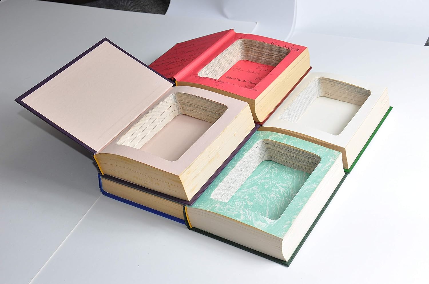 Discover a clever way to hide your valuables in plain sight with this handcrafted Vintage Hollow Book Safe. Made from a authentic hardcover edition of Digest Condensed Books, each safe is carefully crafted in Chattanooga, TN. It looks and feels just like a real book—because it is one. The pages are unglued and flippable, preserving the original look while revealing a hidden compartment inside. It's a discreet storage solution for small items like cash, jewelry, or keepsakes, all while blending perfectly on a bookshelf, desk, or coffee table. Each book safe is handmade from real, vintage hardcover books, giving every piece a unique look. The hollow compartment is approximately 5.5 inches by 3.7 inches and about 1.5 inches deep—just the right size for small personal items. The exterior dimensions of the book are roughly 8 inches by 5.5 inches, offering an authentic and convincing disguise. Whether you're shopping for a reader, traveler, college student, or someone who loves clever gifts, this hidden book safe is a thoughtful and surprising choice. It's especially ideal for birthdays, graduations, white elephant gift exchanges, or that hard-to-shop-for friend or family member who already has everything. Each book is pre-owned and in very good to like-new condition, and you’ll receive a randomly selected color and title from the styles shown. Add a touch of charm, secrecy, and craftsmanship to your space with this unique concealment safe—because sometimes, the best hiding spots are hiding in plain sight.