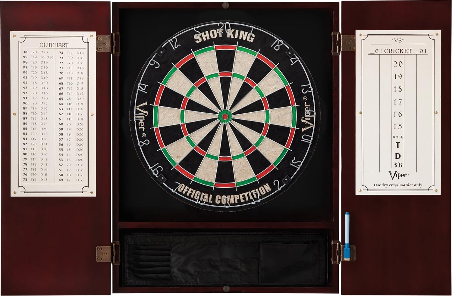 | Model Name | Viper Metropolitan Solid Wood Cabinet & Sisal/Bristle Dartboard Play-Ready Bundle: Standard Set (Shot King Dartboard), Oak Finish |