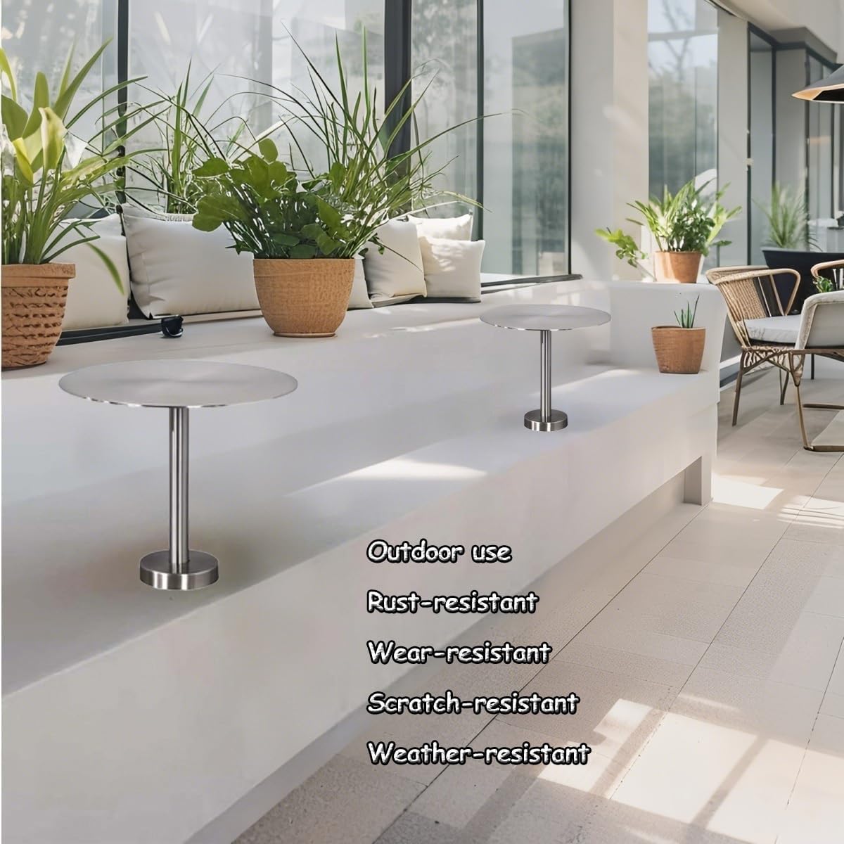 Transform your space with our minimalist stainless steel small round table, a must-have for any contemporary setting. Perfectly suited for both residential and commercial use, this table strikes the ideal balance between style and functionality, making it a versatile choice for various environments, from cozy kitchens to bustling cafés. **Product Features:** - **Adaptable Sizes:** Available in four convenient diameters (30cm, 35cm, 40cm, and 50cm), this table fits seamlessly into any space. Whether you need a petite option for a quaint nook or a larger table for entertaining, we have the right size for you. - **Durable Design:** Crafted with a robust stainless steel base, this table offers exceptional stability, making it suitable for everything from coffee machines to dining setups or decorative displays. - **Sleek Appearance:** With its clean lines and polished surface, this table not only serves a practical purpose but also elevates your décor, adding a touch of sophistication to your home or business. **Ideal Usage Scenarios:** Imagine enjoying your morning coffee at the 30cm table on your balcony, or hosting a lively dinner with friends around the spacious 50cm version in your living room. This table enhances your environment and creates an inviting atmosphere for gatherings. **What's Included:** - 1 x Round Bar Table - Installation Accessories Upgrade your living space with our minimalist stainless steel small round table. It’s a smart investment for anyone looking to blend style with practicality, ensuring your environment reflects modern elegance and quality.