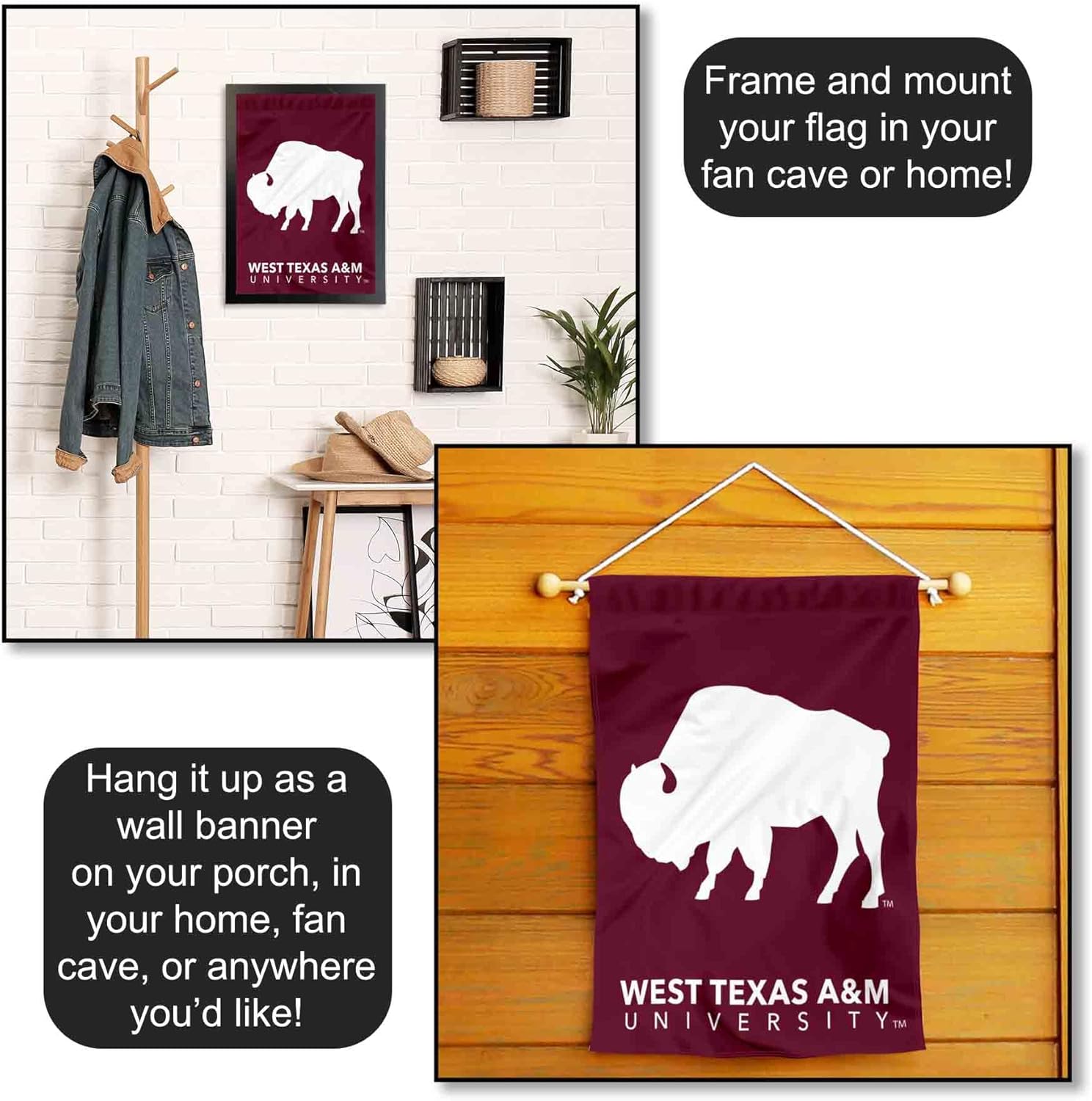 Ideal for your garden or home entrance is our garden banner flag. This double sided Garden Flag measures a large 13 in x 18 in, has a Double Stitched border, a 1 inch top sleeve, and is made of 2 ply Polyester so the logos are Viewable and Readable Correctly on Both Sides. The Screen Printed college logos are Officially Licensed and Approved by the League and school. (Flag Only, Garden Stand and Accessories Sold Separately)