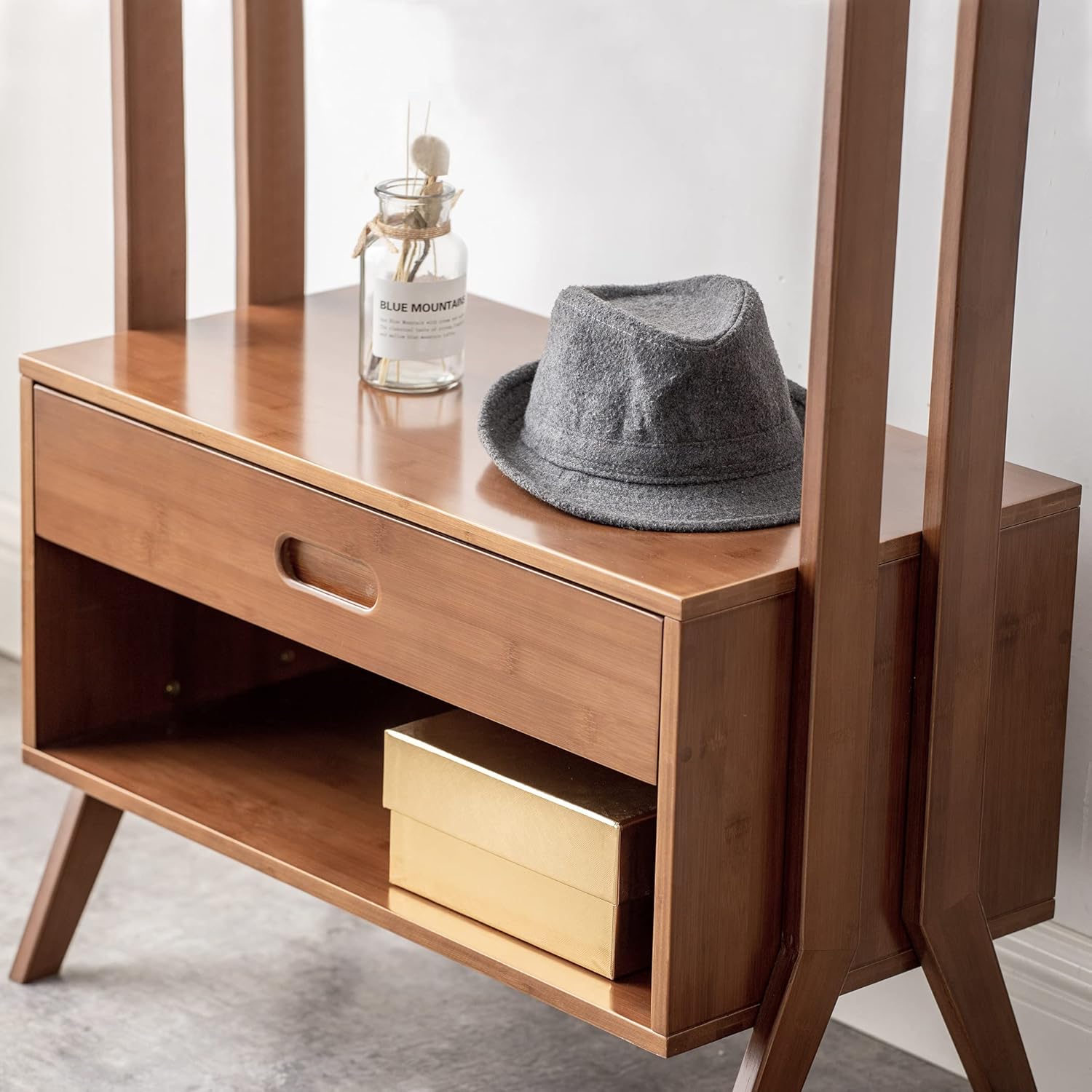 Are you still worried about having too many clothes at home? Are you still thinking about how to pack your clothes and small items every day? look at this! Our products are elegant and functional, with dividers and drawers providing ample storage and display space, and multiple hooks on the side for personalization, adding elegance to the entire product. It is made of high-quality wood with a smooth and flat surface, ideal for hallways, living rooms, bedrooms, offices, etc. Take it home if you like it!
