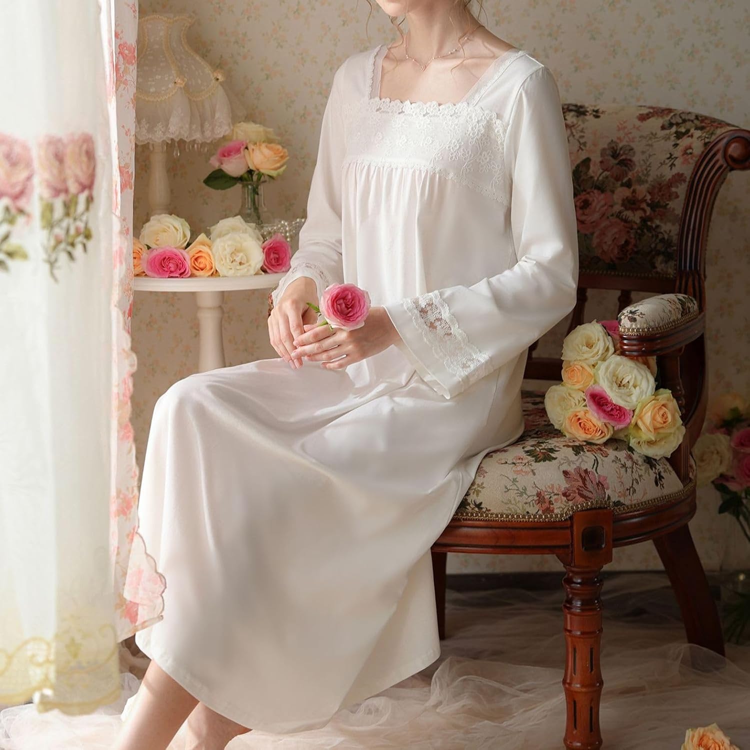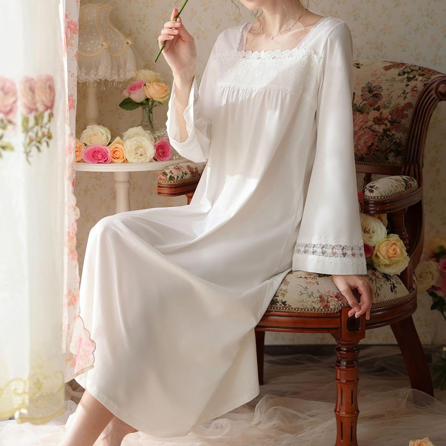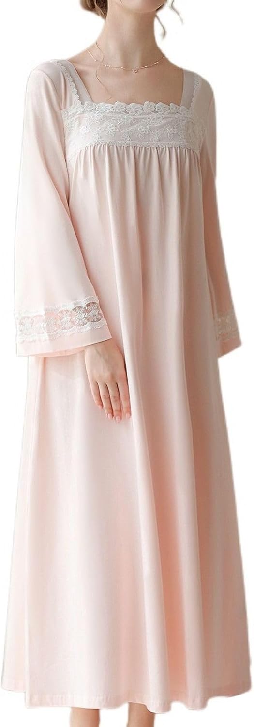 Generic Women's Long Sleeve Nightgown Princess Vintage Cotton Summer Long Vintage Loose Lightweight Night GownSize GuideTag size S = US size X-Small,Tag size M = US size Small,Tag size L = US size Medium,Tag size XL = US size Large
