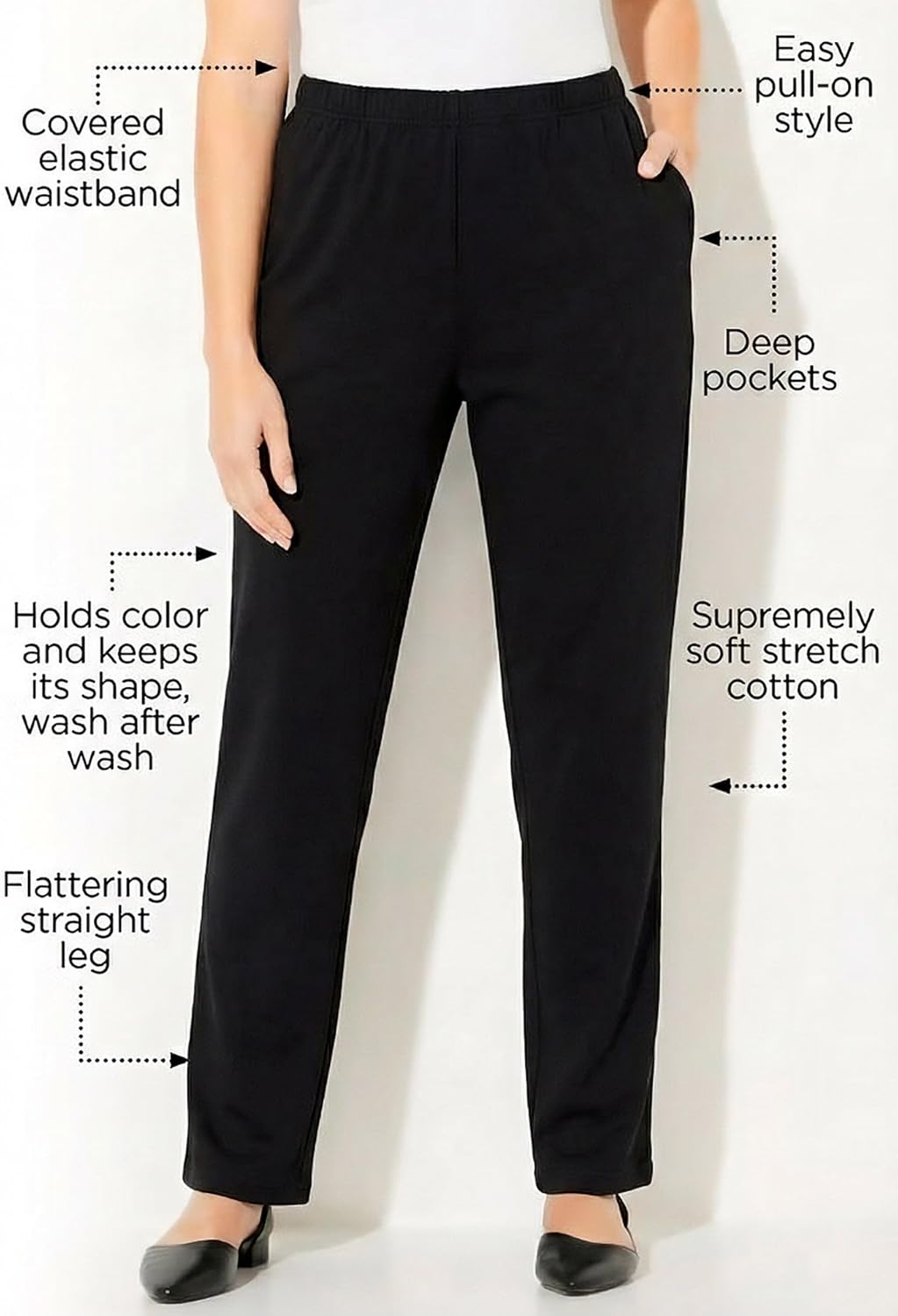 There's a reason the Suprema Pant is our 1 style with over 1 million units sold. This flattering plus size pull-on pant is made for all-day comfort and ease and suited for every part of your lifestyle.FABRIC: Catherines exclusive Suprema fabric is a high-quality stretch-cotton knit that is supremely soft and breathable with lasting durability and excellent shape retention, wash after wash, wear after wear.FIT: Easy, pull-on pant with a comfortable elastic waistband, deep pockets, and a flattering straight leg silhouette. Skims the body from hip to hem for a smooth fit.WHY YOU’LL LOVE IT: Like every style in our exclusive Suprema Collection, it delivers signature softness, lasting quality, and where-everywhere versatility. 95% Cotton, 5% Spandexbr>Machine Washbr>Imported Plus Size Pantbr>Regular: 30" inseambr>Petite Short: 25.5” inseambr>Petite: 27" inseambr>Tall: 33" inseambr>Plus Sizes 0X-6X, Petite Short Plus Sizes 0XWPS-5XWPS, Petite Plus Sizes 0XWP-5XWP, Tall Plus Sizes 0XWT-5XWTbr>Exclusively Catherines Don't forget the matching Suprema Tops. img style="height: 53px; width: 300px;" src="https://sfcc.stg.rmx.plussizetech.com/on/demandware.static/-/Sites-oss-Library/default/dw587e02d1/oss-images/pdp-image/Cotton-Logo-TM-Tagline2.svg" alt="The Seal of Cotton is a trademark of Cotton I