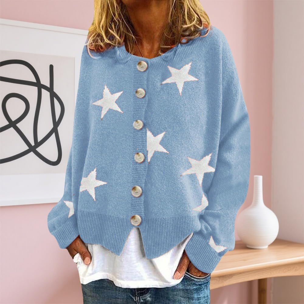 Spatofa Womens Star Printed Cardigan Crewneck Button Down Plus Size Heavyweight Knit Sweater 2025 Fall Winter Trendy