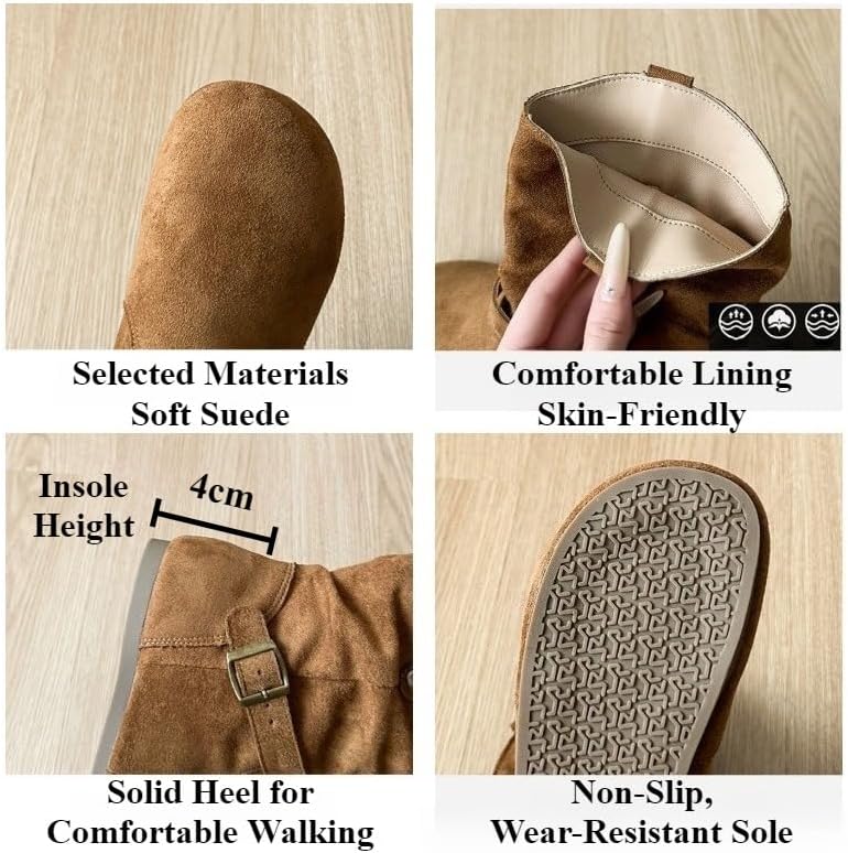 Upper Material: Suede Lining Material: Cloth Shaft Material: Suede Insole Material: PU Sole Material: Rubber Heel Height: Low (1-3cm) Shaft Height: Low Closure: Slip-on Toe Shape: Round Suitable Season: Winter, Spring, Autumn Style: Comfortable, Elegant