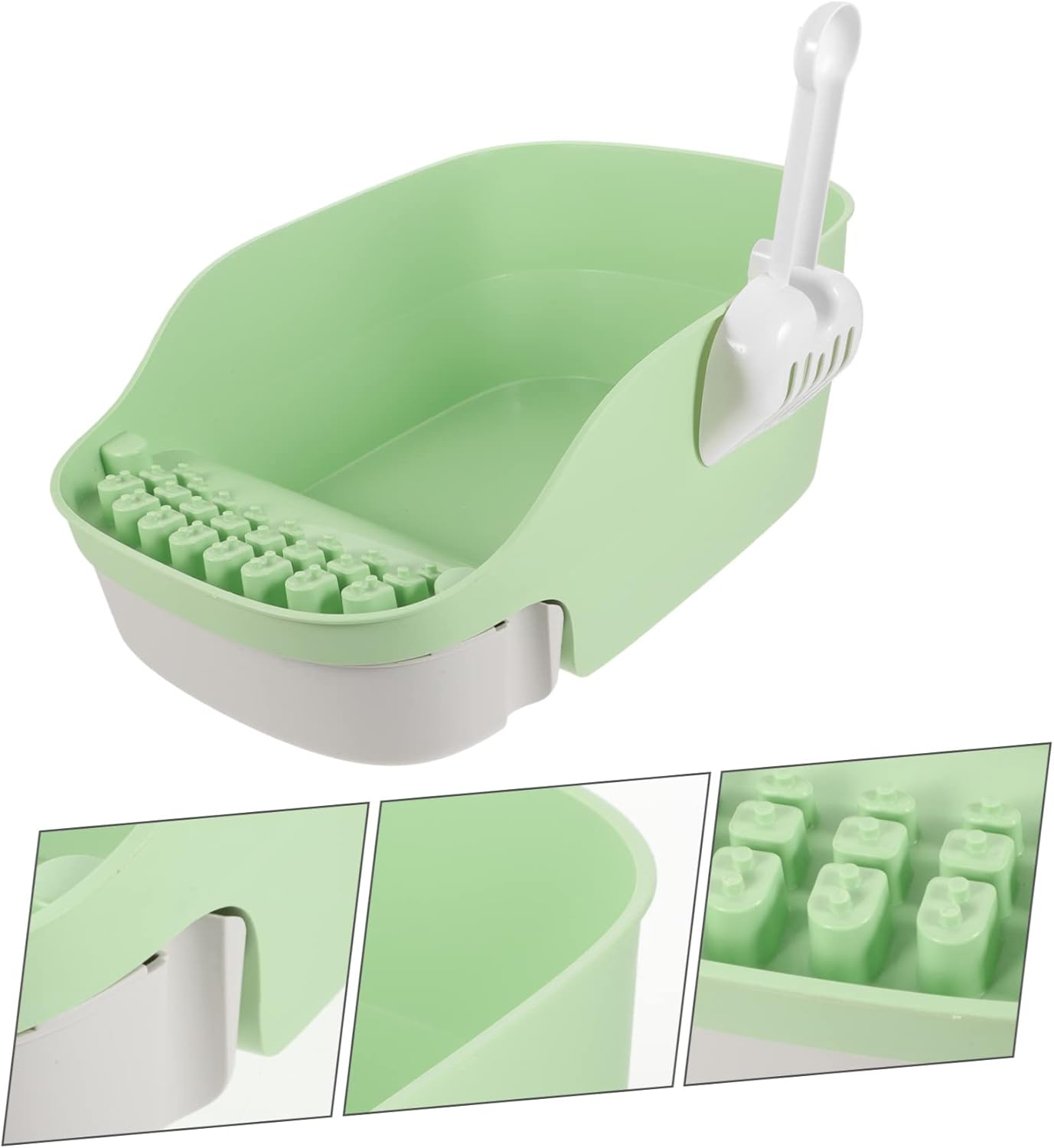Package List 1 x Cat Litter Box 1 x Shovel Characteristics -Material:Plastic Cat Litter Box -Size:41.00X30.00X15.00cm/16.11X11.79X5.89in Kitten Litter Box -Color:Light Green Portable Kitten Litter Box - Provides plenty of space and quick use for cats, suitable for animals such as cats and small dogs Large Capacity Cat Toilet. - This cat litter box is exquisitely crafted and , and is widely loved by most people Open Type Litter Box. - Train your cat to handle the litter in this basin. This kitten litter box will help you Household Cat Litter Box. - The large space makes the cat more comfortable and will not resist entering inside Open Type Cat Toilet. - The open type cat litter box shape makes it easy to observe the cat the toilet Pet Supply.Goods InformationHousehold Cat Toilet and , and this cat litter box is .Cat Toilet Comes with shovel help you .Open Type Cat Toilet This is a cat litter box that is made of plastic materials that are enough to last a long time