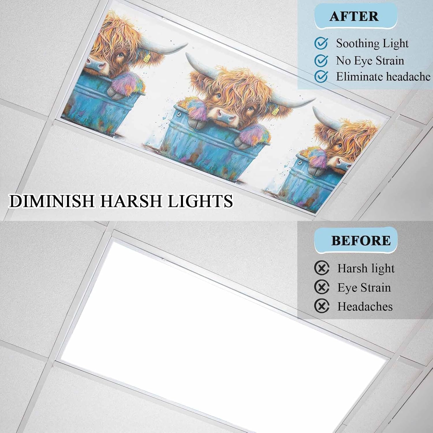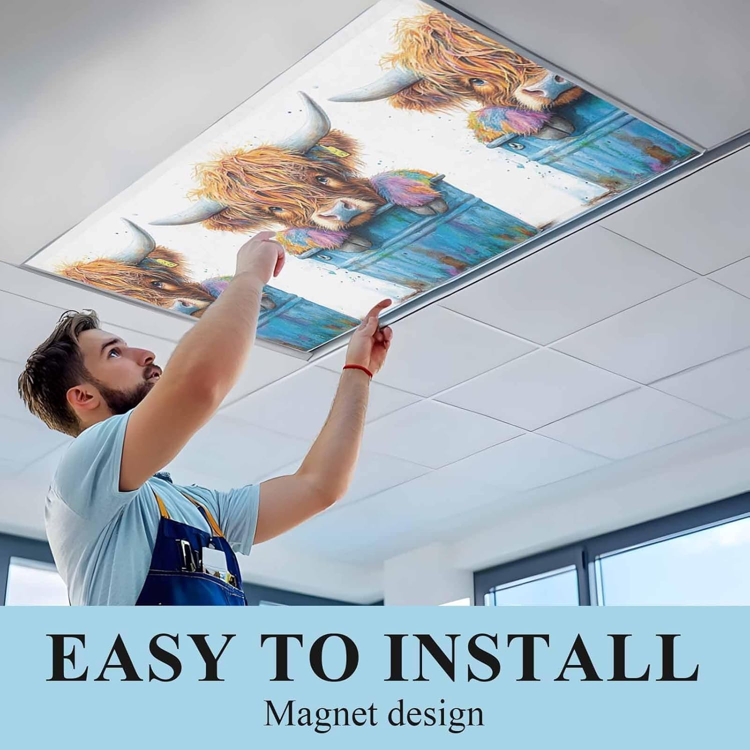 TRANSFORM HARSH LIGHTING INTO A PLEASANT AND INVITING ATMOSPHERE WITH OUR FLUORESCENT LIGHT COVERS MAGNETIC TODAY Specifications: Material: Oxford cloth Package includes: 1/2/3/4 x Fluorescent light covers with 10 magnet Size: 4x2 feet Notes: Manual measurement, please allow slight errors on size. The color may exist a slight difference due to different screen displays. Magnetic Fluorescent Light Covers Features: Eye Protection Decorative fluorescent light covers help protect your eyes by reducing glare and providing a more comfortable lighting experience. Easy Installation Featuring a magnetic design, these classroom light filters are incredibly easy to install. Simply align the magnets with the metal frame, and you're done. Enhanced Ambiance Transform harsh overhead lighting into a soothing, glare-free ambiance, ideal for offices and classrooms. Attractive Design With patterns inspired by the natural world, these office light covers offer a relaxing, vibrant, and eye-catching experience. Improved Focus These drop ceiling light cover can decrease distractions, increase concentration, and relieve eye strain, perfect for work or study environments. Versatile Decoration Ideal for various settings such as classrooms, hospitals, nursing homes, children's rooms, offices, and study rooms, these covers are both practical and decorative.