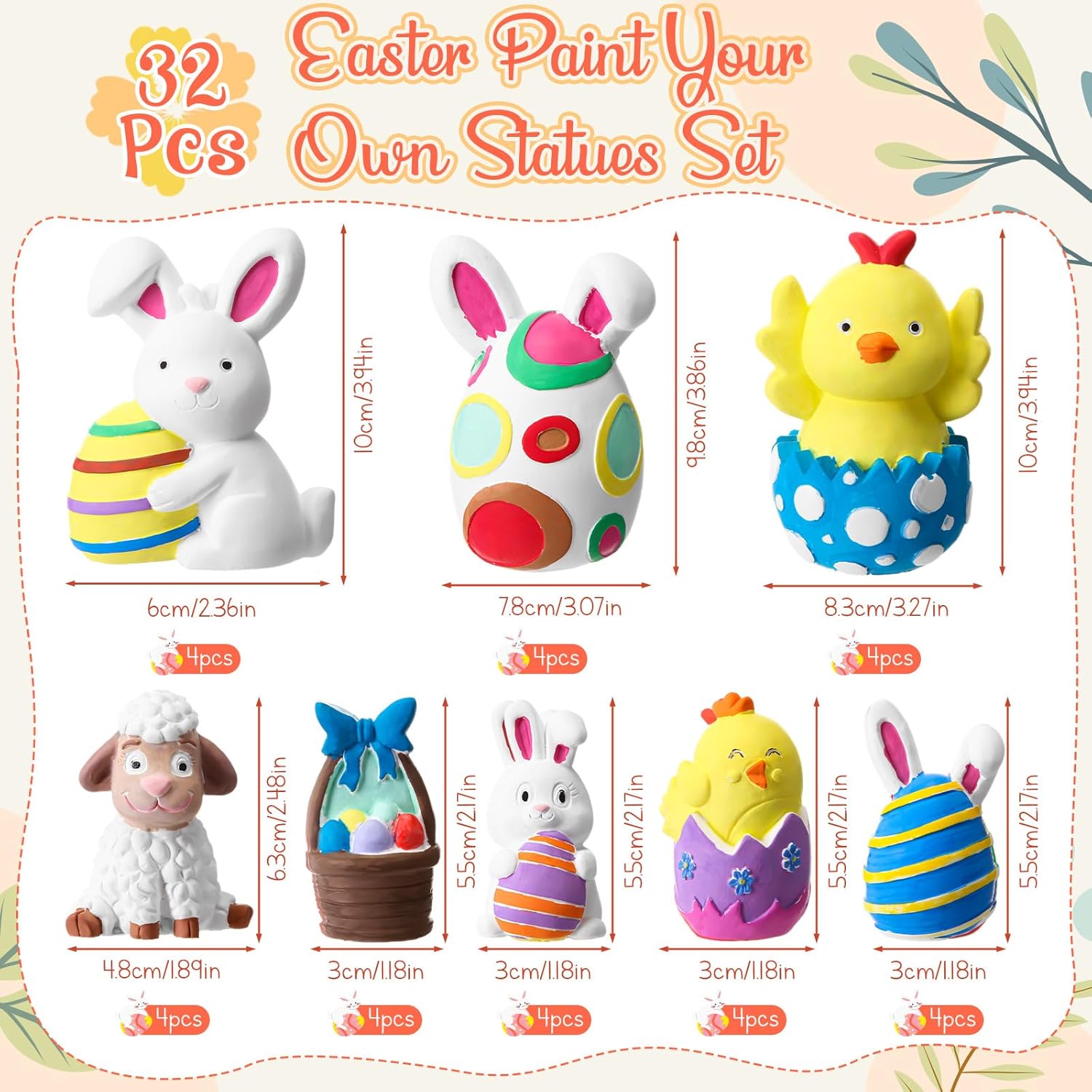 | Included Components | 32 unpainted paint plaster bunnies (8 designs, 4 of each), paint, paint brushes |
